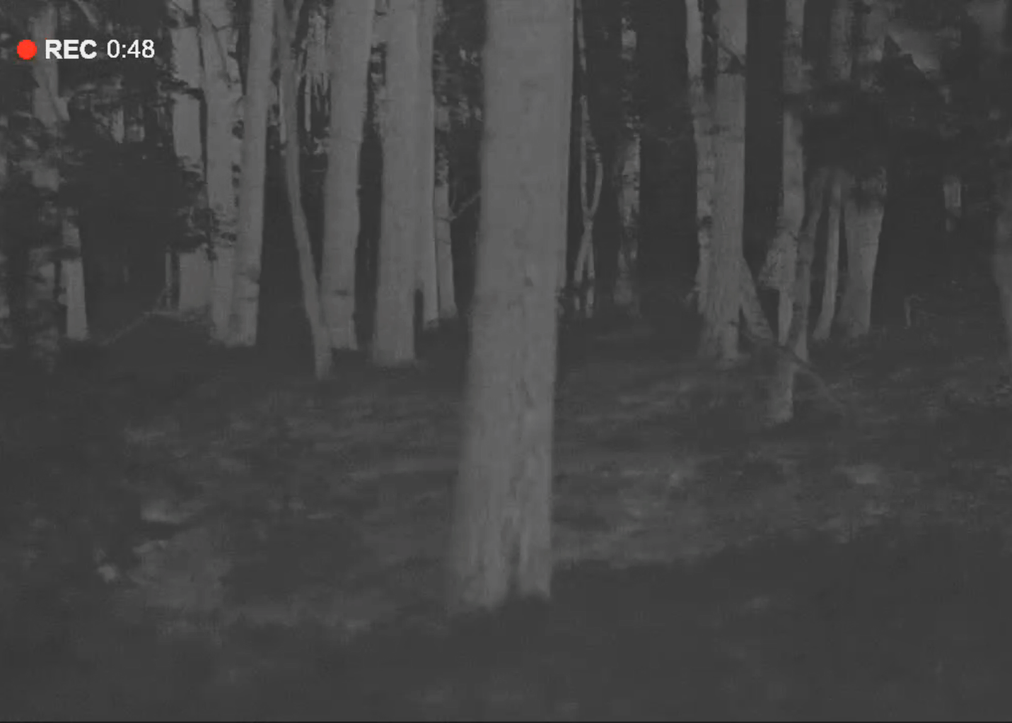 De warmtebeeldcamera laat zien dat de grond koud is, de bomen geven iets warmte, de ree kleurt wit en is daardoor duidelijk van de omgeving te onderscheiden.